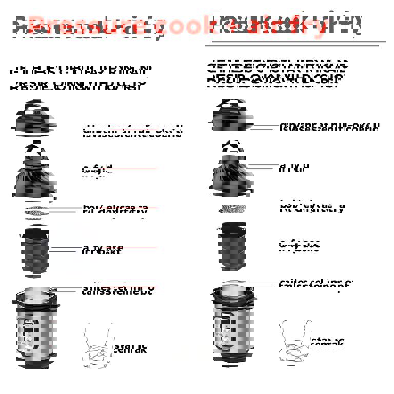 • The Duo Crisp functions as both a pressure cooker and an air fryer.