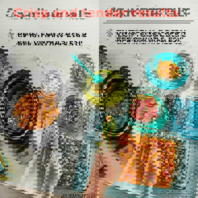- Multiple cooking settings, including air fry, bake, broil