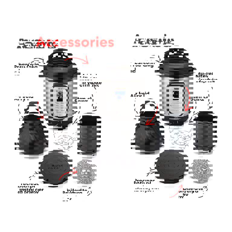 - Multiple uses - pressure cooking, air frying, baking, dehydrating