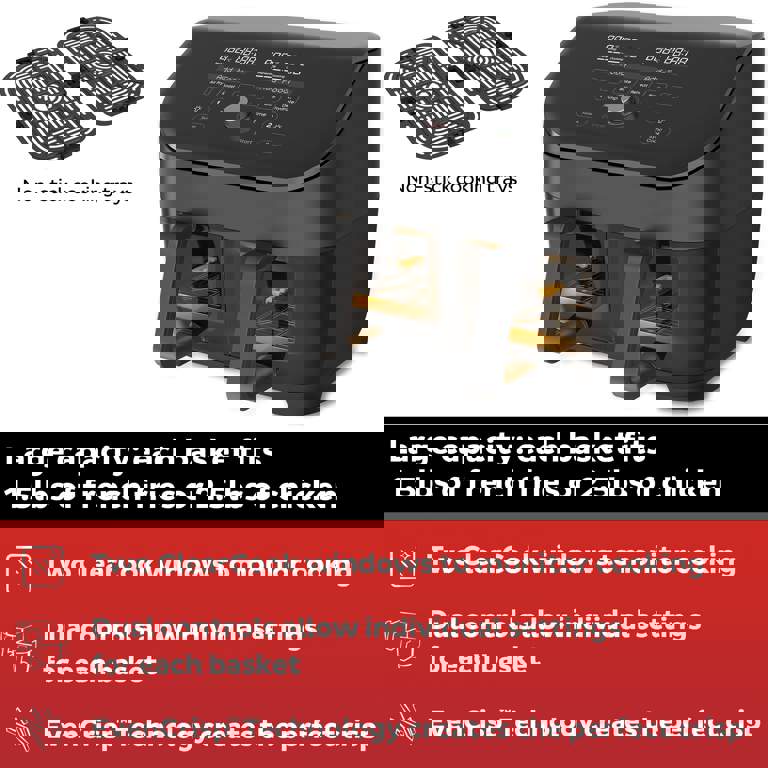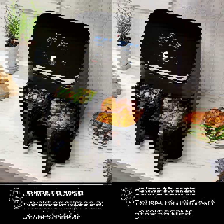 Instant Vortex Plus XL 8-quart Dual Basket Air Fryer Oven, From the Makers of Instant Pot, 2 Independent Frying Baskets, ClearCook Windows, Dishwasher-Safe Baskets, App with over 100 Recipes