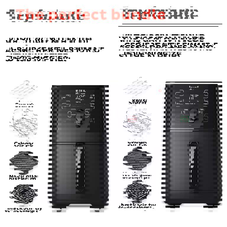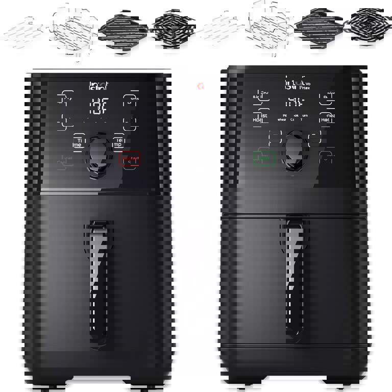 - The Instant Pot Vortex 5.7-quart Air Fryer Oven comes with customizable smart cooking programs, a digital touchscreen, and nonstick and dishwasher-safe basket for easy clean-up. It also includes an app with over 1900 recipes, proven safety features, and included accessories like a grill plate and skewer set.