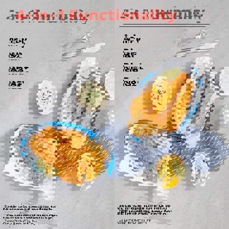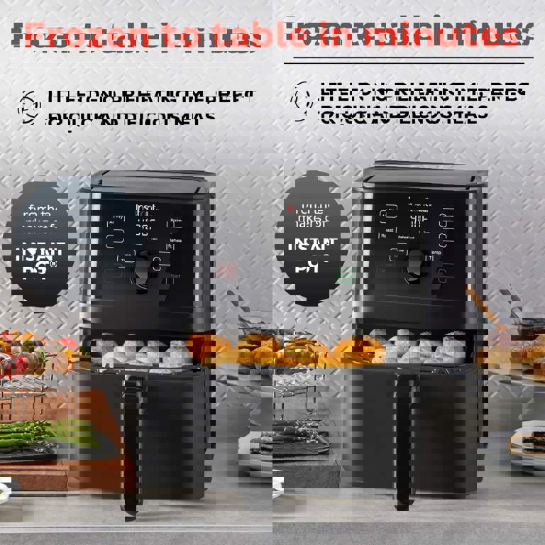 The Instant Pot Vortex 5.7-quart Air Fryer Oven offers 4-in-1 functionality with air fry, broil, roast and reheat functions for increased versatility. It also features EvenCrisp Technology for advanced airflow top down for perfect golden finish on all your food. You can also customize the one-touch smart programs to create wings, roasted veggies, garlicky potatoes or even cinnamon buns! With little to no preheating time required and a temperature range of 120 to 400° F you can create gourmet meals in minutes! This air fryer is perfect for quick delicious meals as well as side dishes or appetizers. Plus it's easy to clean up with the nonstick basket and tray which are both dishwasher safe! Finally you get access to an app which has over 1900 recipes so you can find new favorites every day.