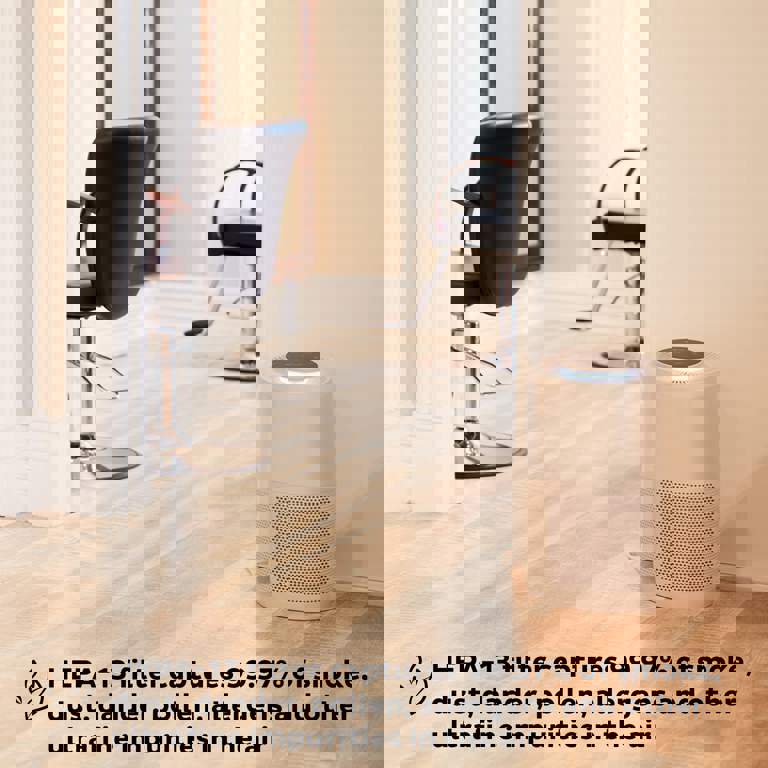 The Instant HEPA Quiet Air Purifier from the makers of Instant Pot offers advanced air cleaning technology with a HEPA-13 filter that captures 99.97% of dust, pollen, smoke, mold and other impurities combined with Plasma Ion Technology to project positive and negative ions in the air. It filters up to 1140 sqft per hour and features an Auto mode that senses air quality, an odor reducer, whisper-quiet operation, Energy Star certified eco mode and long lasting filters.