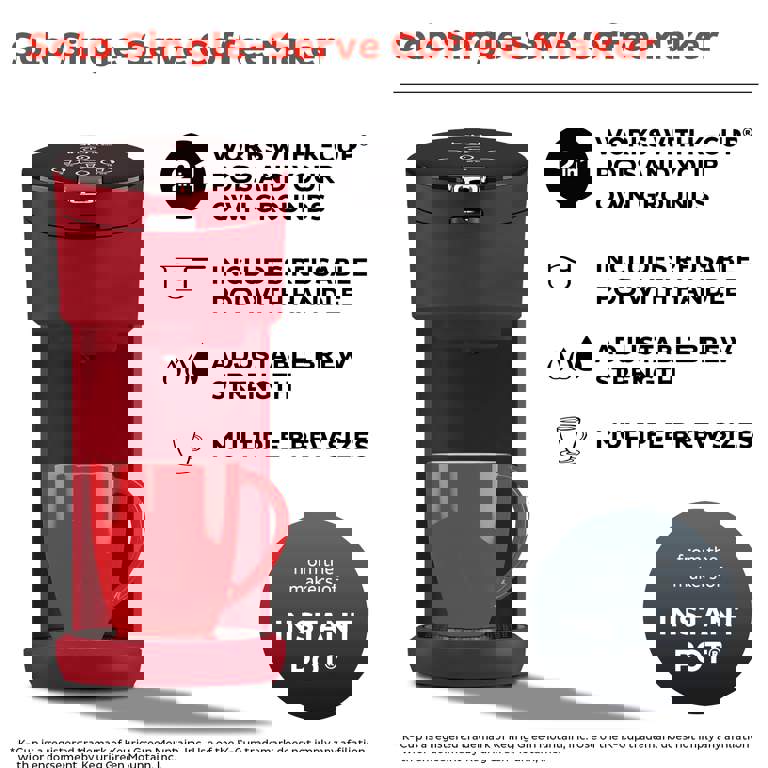 Instant Solo Single Serve Coffee Maker, From the Makers of Instant Pot, K-Cup Pod Compatible Brewer, Includes Reusable Coffee Pod & Bold Setting, Brew 8 to 12oz., 40oz. Water Reservoir, Red
