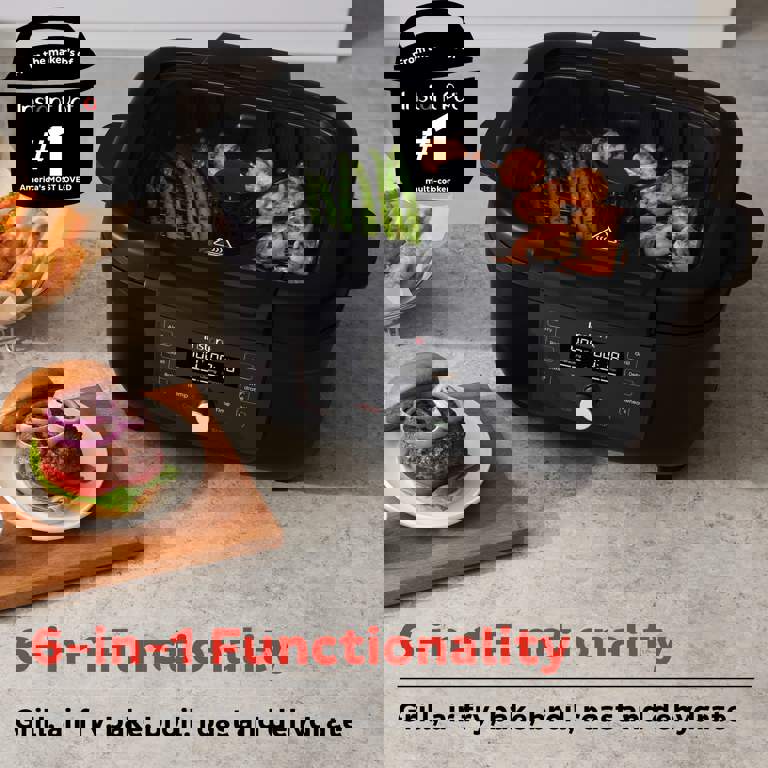 Instant 6-in-1 Indoor Grill and Air Fryer with Bake, Roast Reheat & Dehydrate, From the Makers of Instant Pot, with Odor-Reducing Filter, Clear Cooking Window, and Removable Lid for Easy Cleaning