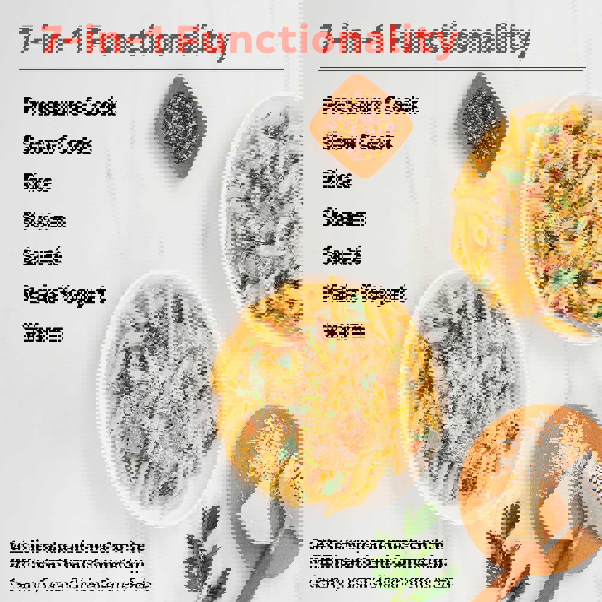 This product is a 7-in-1 Instant Pot Duo electric pressure cooker, slow cooker, rice cooker, steamer, sauté pan, yogurt maker and food warmer. It features 13 customizable Smart Programs for pressure cooking and comes with a tri-ply bottom for more even cooking. It's perfect for growing families as it can cook for up to six people and comes with a free app with over 1900 recipes. Plus it has over 10 safety features and is fingerprint resistant!
