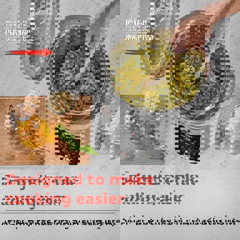 The Instant Pot RIO is an innovative 7-in-1 electric multi-cooker with an upgraded anti-spin inner pot and easy to use control panel with cooking progress indicator. It has 13 customizable smart programs with pressure and slow cook settings, plus 10 safety features. The inner pot is made of food grade stainless steel and tri-ply bottom for even cooking, making it great for growing families or meal prepping. Plus, the free app provides over 800 recipes for iOS and Android!