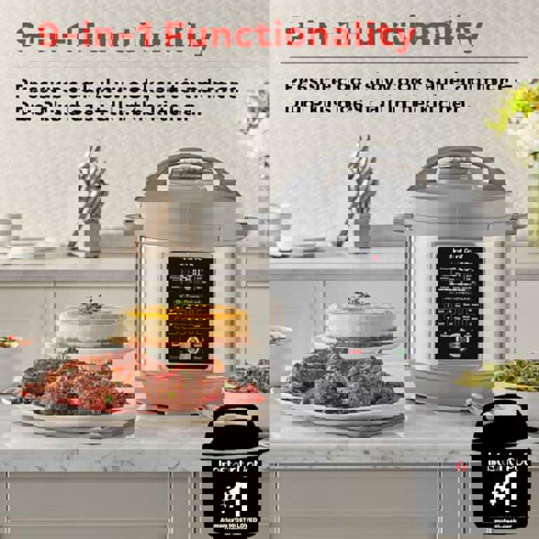 The Instant Pot Duo Plus 6-Quart is a 9-in-1 Electric Pressure Cooker, Slow Cooker, Rice Cooker, Steamer, Sauté Yogurt Maker, Warmer & Sterilizer that is whisper quiet and comes with an App with 1900+ Recipes. It has a beautiful stainless steel grey finish to match any kitchen décor and customizable Smart Programs for pressure cooking ribs, soups, beans, rice and more. It also features a tri-ply bottom inner cooking pot for even cooking and anti-spin design for perfect sautéing. The Instant Pot Duo Plus 6-Quart is the perfect kitchen appliance for quick weekday family dinners or meal prepping batches!